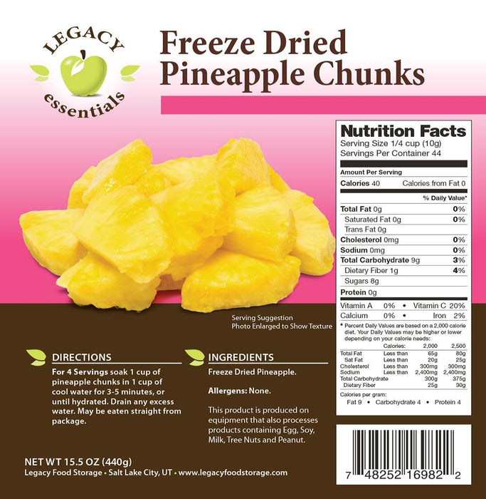 A well-stocked food storage pantry is filled with nutritious foods, real ingredients, and hearty portions. Legacy's freeze-dried emergency food supply is all of these things, and our freeze-dried fruits are no exception. Adding a supply of freeze-dried fruit to your food storage pantry is a great way to add healthy snack choices to your family's emergency store. It also provides you with a quick and easy option if you need fruit in a pinch for smoothies, desserts, and meals.
