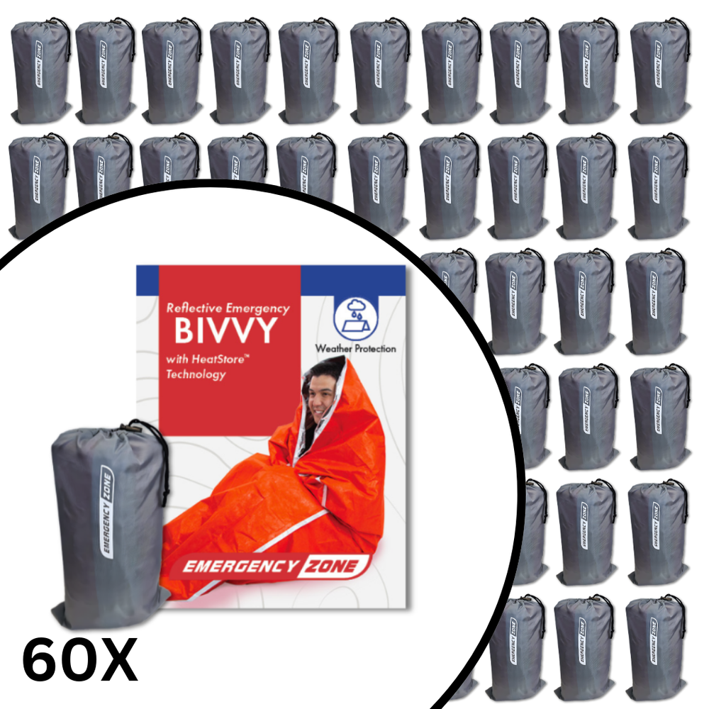 Bulk deals now available on HeatStore Bivvys - limited stock, so act fast to ensure you're ready for whatever comes your way. Protect your family and loved ones from hypothermia in survivl situations. Whether you're lost hiking, stuck in a snowstorm, or camping, being prepared can make all the difference. Whether you're stocking up for a group, or just preparing for the unexpected, the "HeatStore Bivvy keeps you warm and safe."