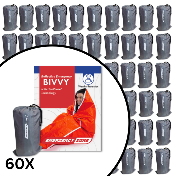 HeatStore Reflective Survival Sleeping Bag - Bulk Pack of 60