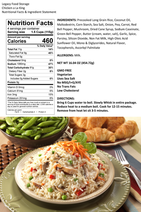 As more and more people are diagnosed with gluten-induced illnesses, Legacy Premium leads the food storage industry in providing gourmet freeze-dried meals that are not only nutritious and tasty, but also gluten-free. This supply includes 8 different meal options, including everything from creamy soups to hearty chilis.